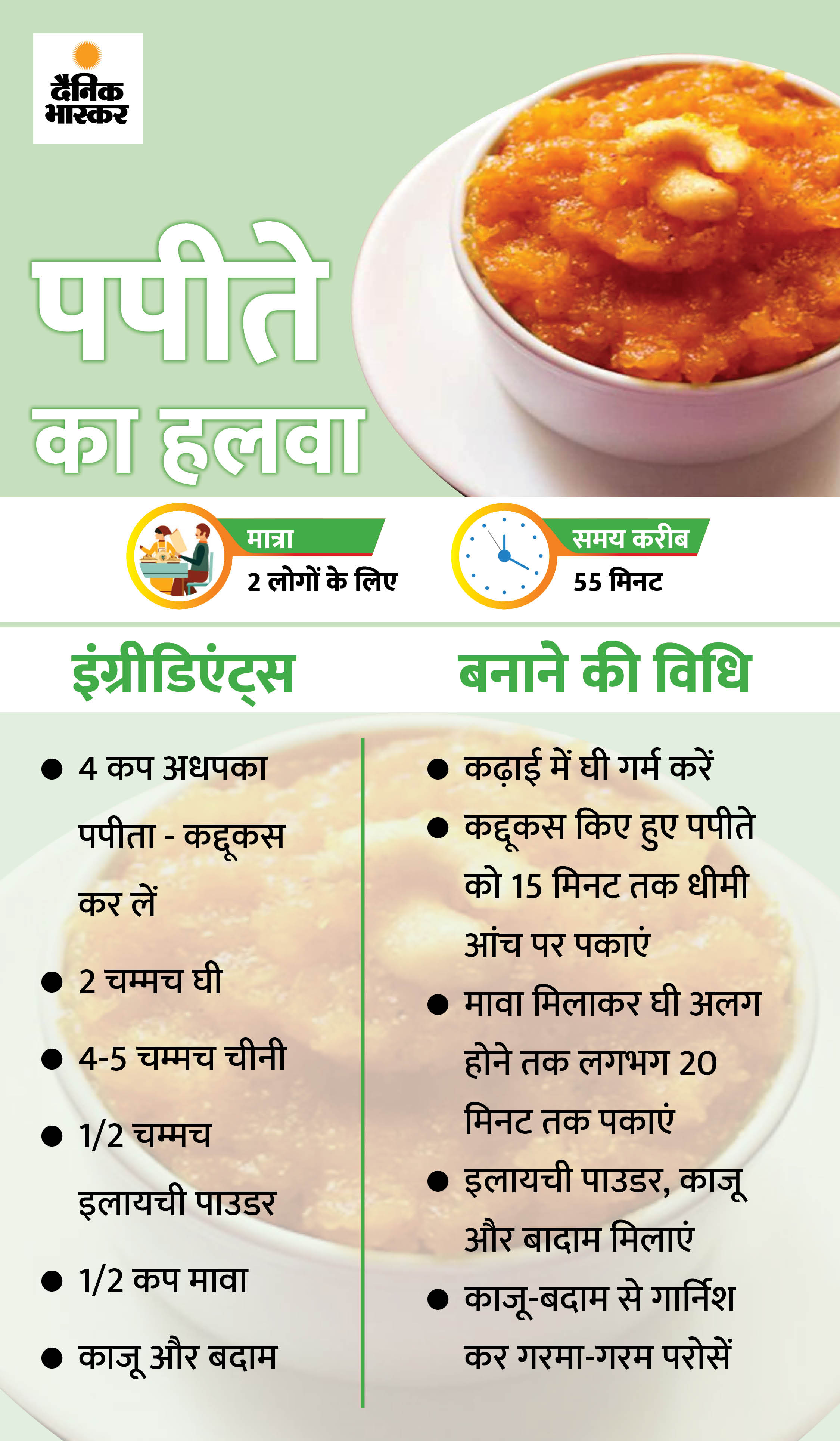 शारदीय नवरात्र के छठे दिन ऐसी डिशेज बनाएं जो आपको दिनभर एनर्जेटिक रखें और कार्ब व विटामिन-सी की कमी भी पूरी करें। इसके लिए पपीते का हलवा और समा के चावल की इडली बना सकते हैं। जानिए इन्हें घर पर तैयार करने की आसान रेसिपी...
